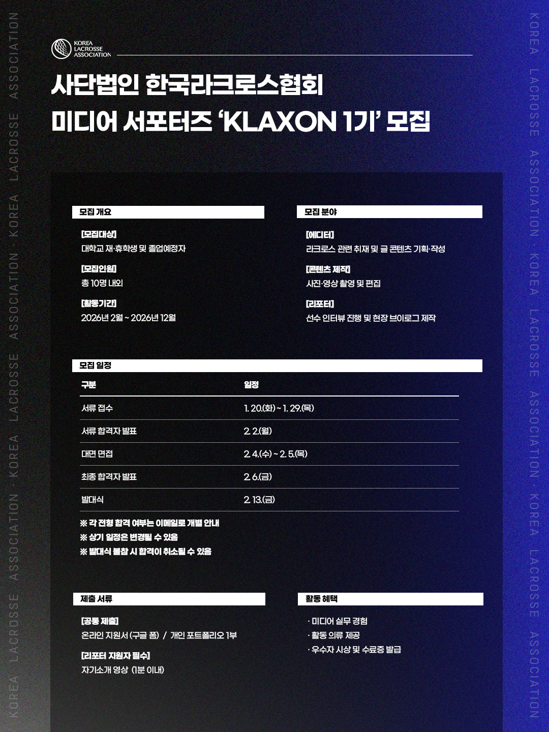 (사)한국라크로스협회 미디어 서포터즈 ‘KLAXION 1기’ 모집