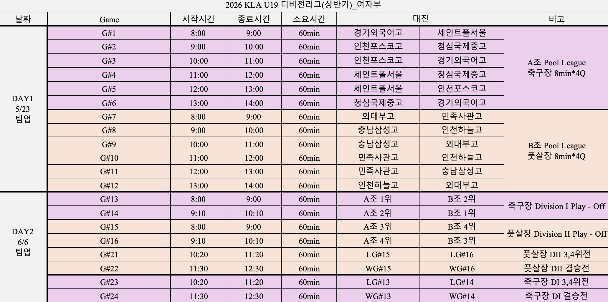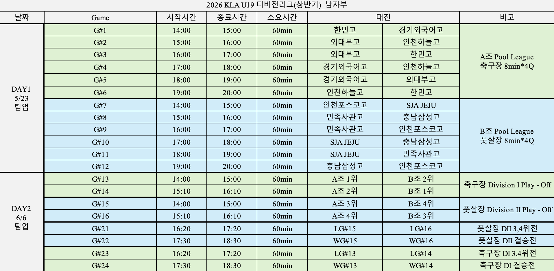 - 경기 시작 세부시간은 다소 달라질 수 있습니다.