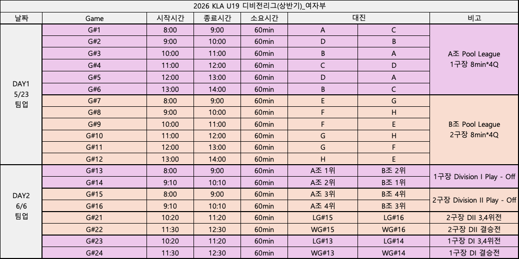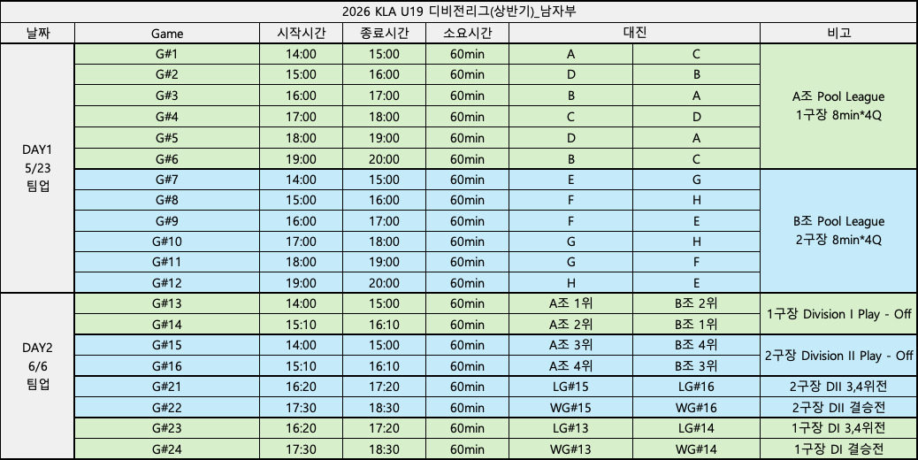 - 경기 시작 세부시간은 다소 달라질 수 있습니다.