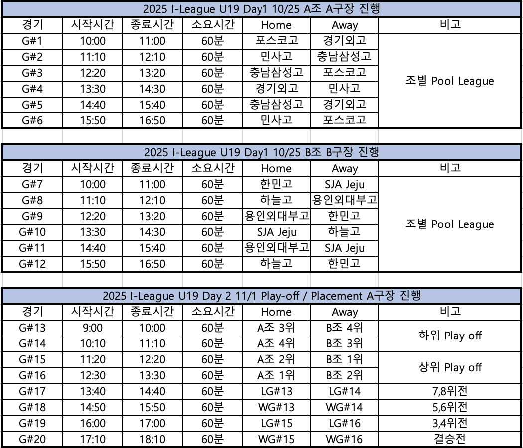 l 남자부 – 2025년 10월 25일, 여자부 – 2025년 10월 26일, 남/여부 Playoff, 결승전 – 2025년 11월 1일