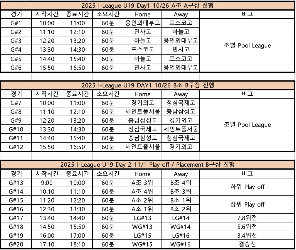- 경기 시작 세부시간은 다소 달라질 수 있습니다.