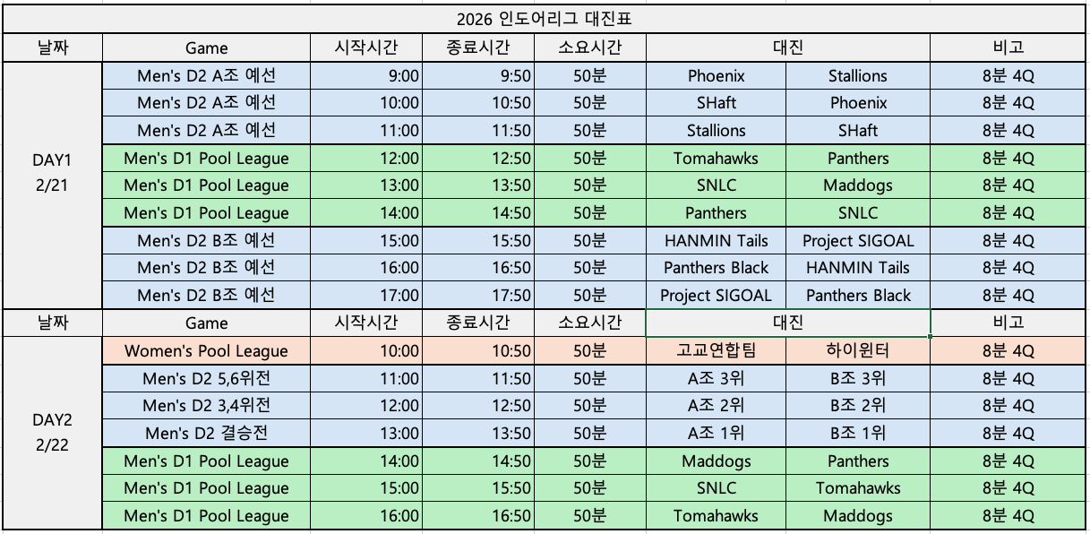 <2026 인도어리그 경기일정>